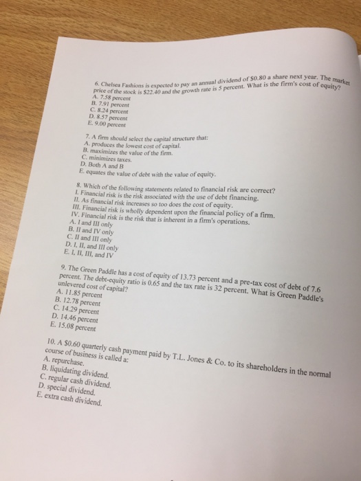 Solved: Chelsea Fashions Is Expected To Pay An Annual Divi ...